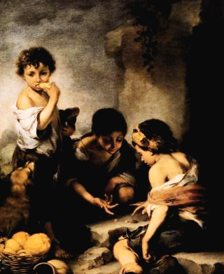 무리요의 그림에는 귀족이나 성인들뿐만 아니라, 가난한 거리의 아이들도 자주 등장합니다. 이는 당시 스페인 미술에서는 보기 드문 주제였습니다.